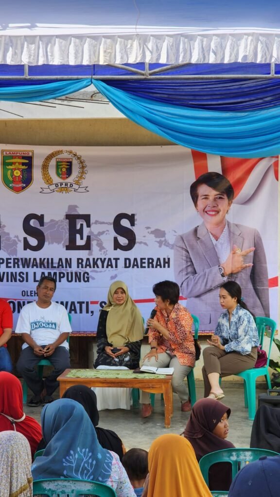 Tulang Bawang Barat – Anggota DPRD Provinsi Lampung Fraksi PDI Perjuangan melakukan reses dalam rangka menyerap aspirasi masyarakat di Pasar Mulya Asri, Kecamatan Tulang Bawang Tengah, Kabupaten Tulang Bawang Barat, Jumat (17/6/2023).
