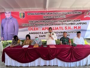 Bandar Lampung – Anggota Dewan Perwakilan Rakyat Daerah (DPRD) Provinsi Lampung, Aprilliati melangsungkan sosialisasi peraturan daerah nomor 2 tahun 2021 tentang penghapusan tindak kekerasan terhadap perempuan dan anak.