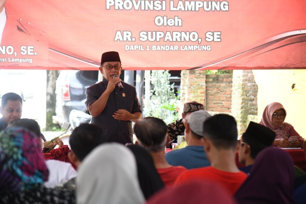Bandar Lampung – AR. Suparno, Anggota DPRD Provinsi Lampung Fraksi PDI Perjuangan melakukan sosialisasi pembinaan ideologi Pancasila di Sukabumi Kota Bandar Lampung, Sabtu (176/2023).