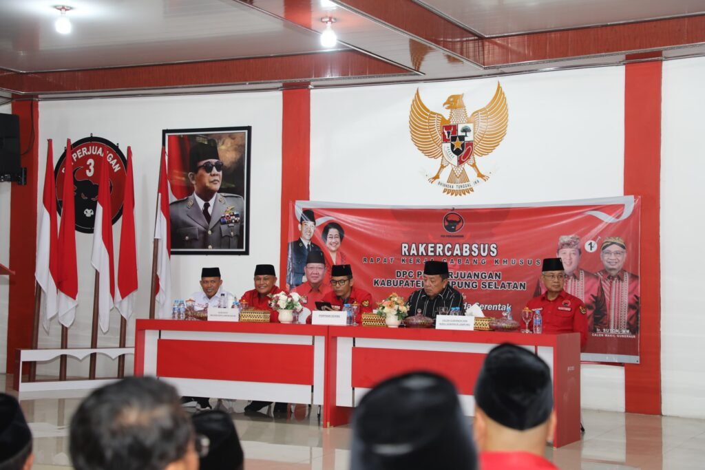 Dalam upaya memperkuat konsolidasi dan memantapkan strategi untuk meraih kemenangan di Pilkada 2024, DPC PDI Perjuangan Lampung Selatan menggelar Rapat Kerja Cabang Khusus (Rakercabsus) di Sekretariat setempat Jln Trans Sumatera, Kecamatan Kalianda, Lampung Selatan, Rabu ( 9/10/2024).