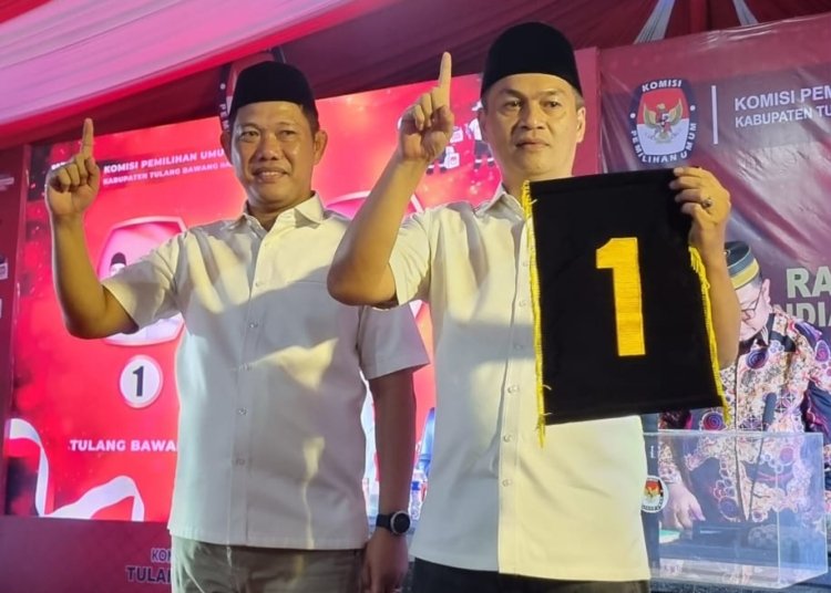 <p><br>Pasangan calon tunggal Pilkada Tulang Bawang Barat (Tubaba) 2024, Novriwan Jaya-Nadirsyah (NoNa) mendapatkan nomor urut 1 (satu). Sedangkan, kotak kosong mendapatkan nomor 2 (dua). </p>