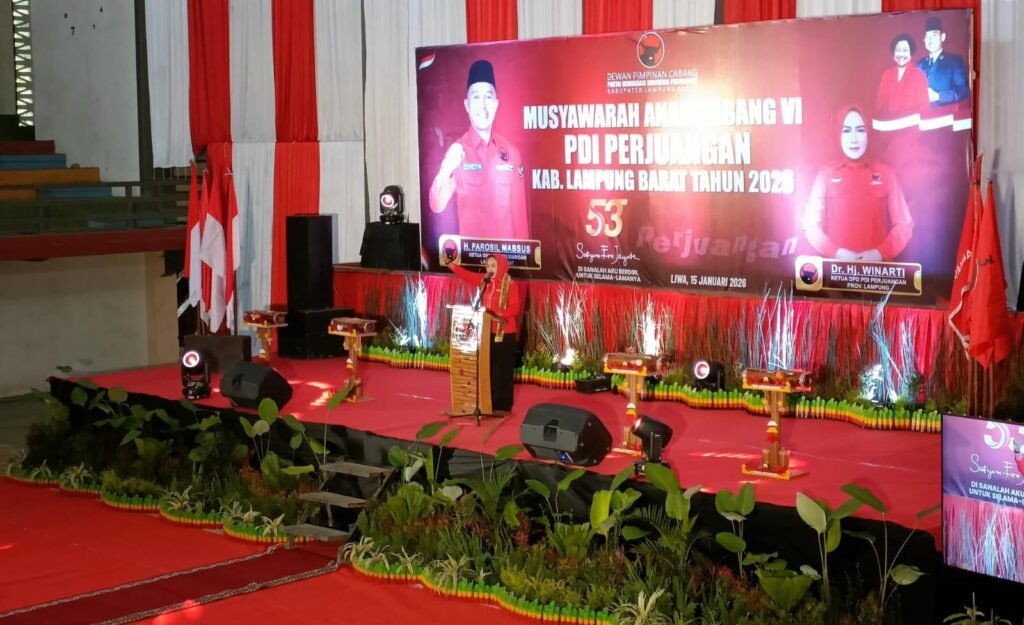 Lampung Barat – Ketua DPD PDI Perjuangan Provinsi Lampung, Winarti, menegaskan bahwa proses regenerasi kepemimpinan di Kabupaten Lampung Barat menjadi bukti PDI Perjuangan terus berkembang sebagai partai yang matang, demokratis, dan berorientasi pada kepentingan rakyat. Hal tersebut disampaikan Winarti saat memberikan sambutan dalam kegiatan Musyawarah Anak Cabang (Musancab) VI PDI Perjuangan Lampung Barat Tahun 2026