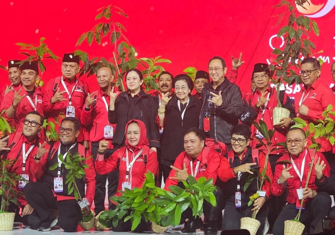 Ketua Umum PDI Perjuangan Megawati Soekarnoputri menutup Rapat Kerja Nasional (Rakernas) I PDI Perjuangan dengan membagikan bibit pohon dan tas…