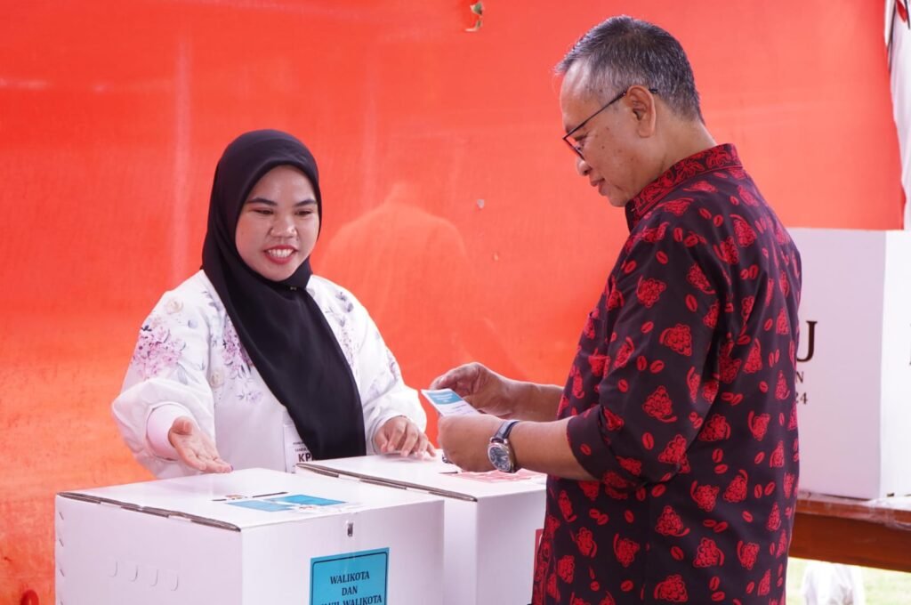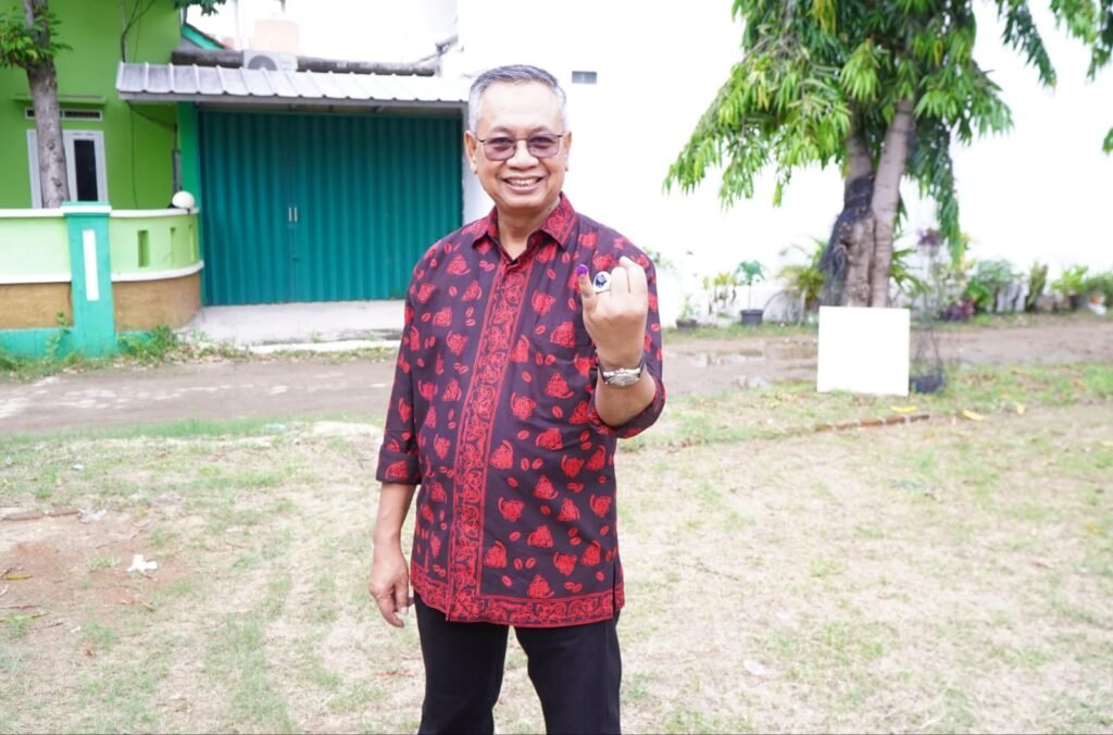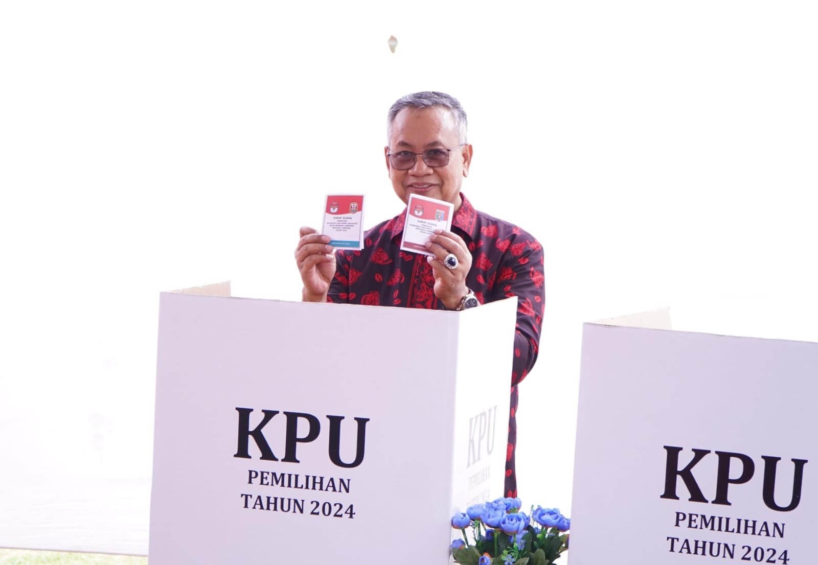 Bandar Lampung – Calon Wakil Gubernur nomo urut 1 Provinsi Lampung, Sutono nyoblos di TPS 6 Perumahan Griya Assalam Kelurahan Rajabasa Pemuka, Kecamatan Rajabasa Bandar Lampung, Rabu (27/11/2024).