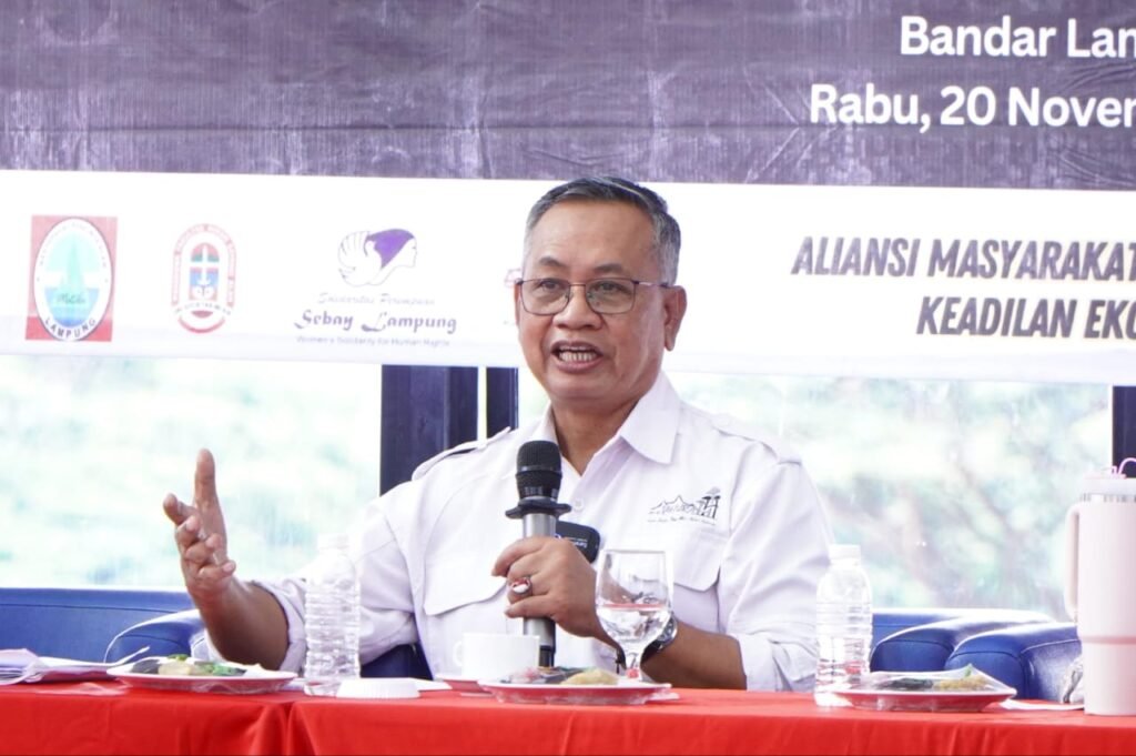 Bandar Lampung – Aliansi Masyarakat Sipil untuk Keadilan Ekologis menggelar dialog terbuka bertema “Menuju Babak Baru Provinsi Lampung dalam Mewujudkan Keadilan Ekologis” di De Sky Resto and Lounge, Enggal, Bandar Lamlung, Rabu (20/11/2024).