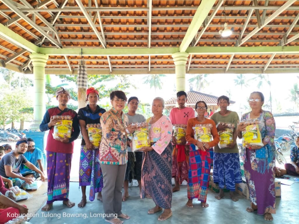 Ratusan paket sembako tersebut dibagikan kepada masyarakat Kecamatan Gedung Meneng dan Banjar Agung Kabupaten Tulang Bawang.