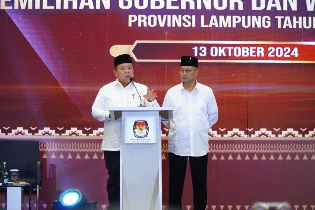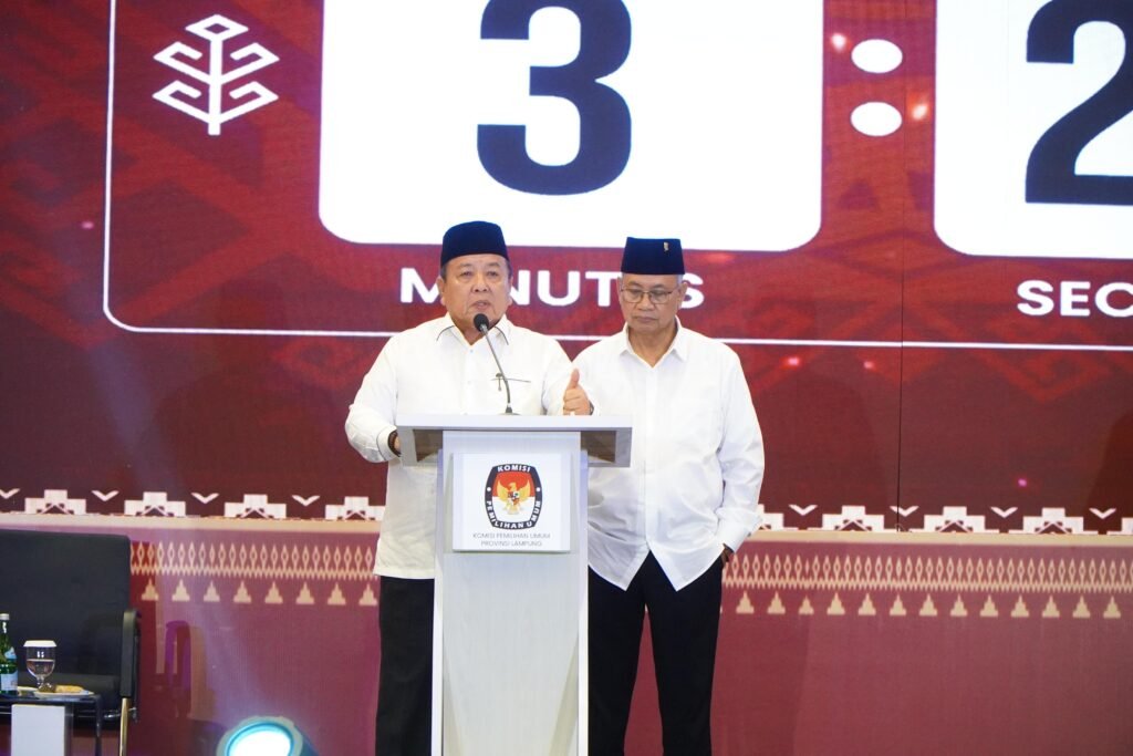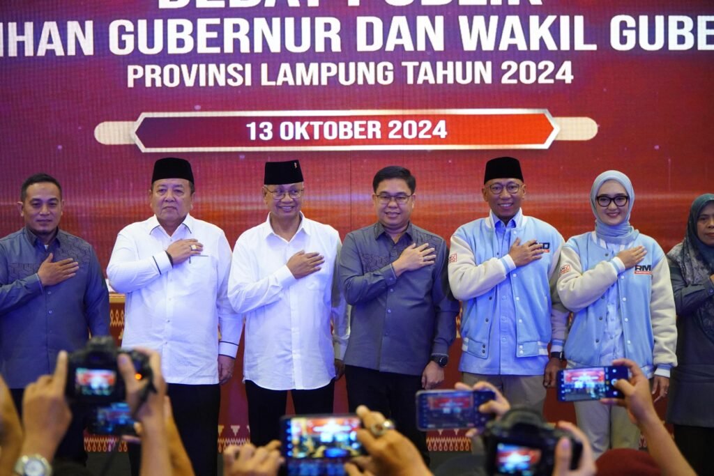 Debat perdana calon Gubernur Lampung digelar Komisi Pemilihan Umum (KPU) Provinsi Lampung pada Minggu 13 Oktober 2024 di Ballroom Hotel Novotel Bandar Lampung.
