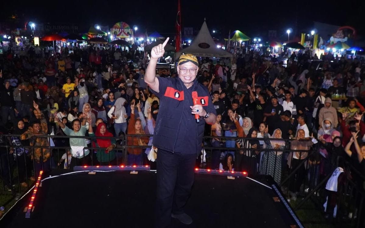 <p>Metro &#8211; Ribuan masyarakat Kota Metro antusias menonton konser pesta rakyat Panah Ardjuno di Lapangan Rejomulyo, Metro, Jumat (22/11/202).</p>