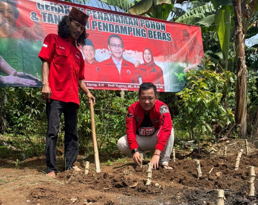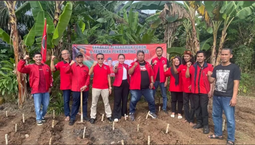 Kegiatan tersebut dipimpin langsung oleh Ketua DPC PDI Perjuangan Kota Bandar Lampung, Dedi Yuginta, yang bersama jajaran pengurus dan kader partai turun langsung ke lokasi penanaman di kawasan Kota Baru, Bandar Lampung, Senin (27/4/2026).