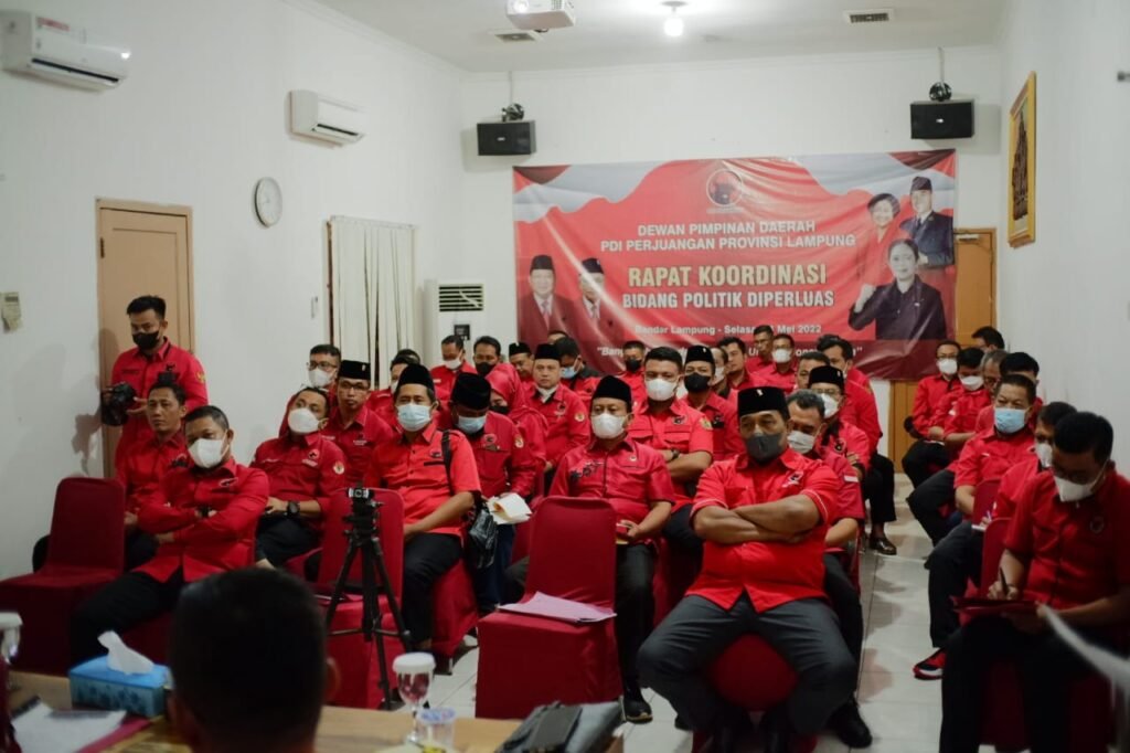 Bandar Lampung – DPD PDI Perjuangan Provinsi Lampung menggelar rapat koordinasi bidang politik diperluas guna memberikan edukasi terhadap bidang politik, bidang organisasi dan bidang pemenangan pemilu di kantor DPD PDI Perjuangan setempat, Selasa (24/5/2022).