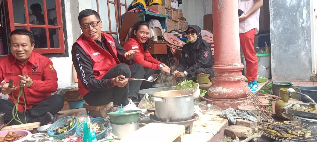 <p><br>Perayaan HUT tersebut, Ketua DPC PDI Perjuangan Wiyadi beserta sekretaris Melinda dan Bendahara Jares Mugni, ikut dalam mengolah makanan. Terlihat Wiyadi mengaduk sayur dan mencicipinya. Sedangkan sekretaris dan bendahara memotong bahan bahan.</p>