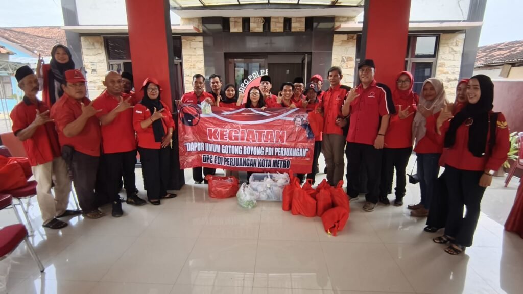 Metro – Dewan Pimpinan Cabang (DPC) PDI Perjuangan Kota Metro membuka dapur umum dan membagikan paket Lebaran kepada masyarakat di sekitar kantor DPC setempat, Rabu (11/3/2026).