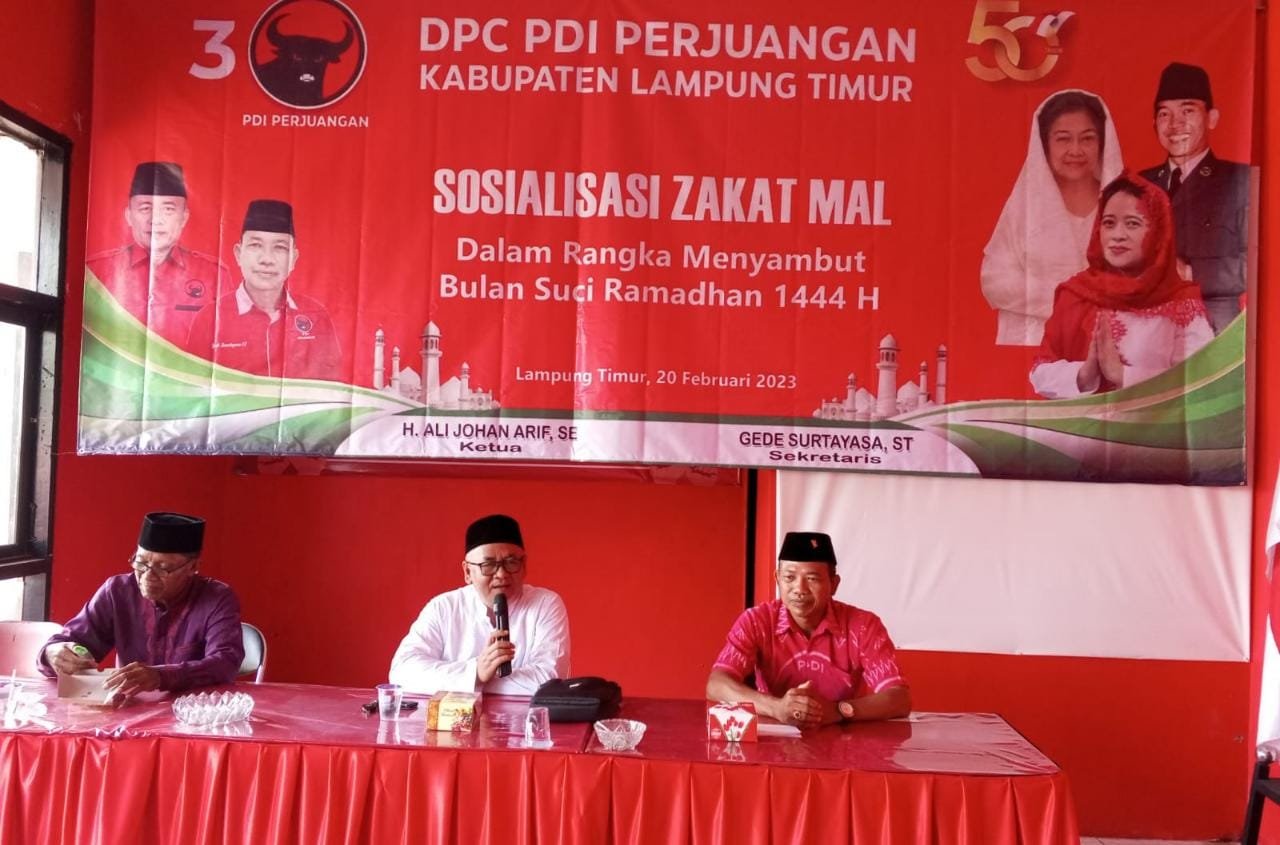 Lampung Timur – Dewan Pengurus Cabang (DPC) Kabupaten Lampung Timur melaksanakan sosialisasi program zakat dalam rangka menyambut Bulan Suci Ramadhan 1444 Hijriah, di Kantor DPC PDI Perjuangan setempat, Senin (20/2/2023).
