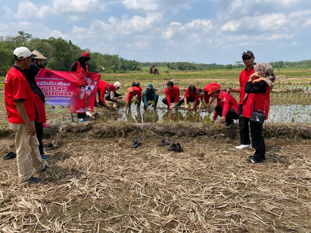 Lampung Utara – Dalam rangka memperingati Hari Tani Nasional, Dewan Pimpinan Cabang (DPC) PDI Perjuangan Lampung Utara melakukan kegiatan turun ke sawah bersama petani.