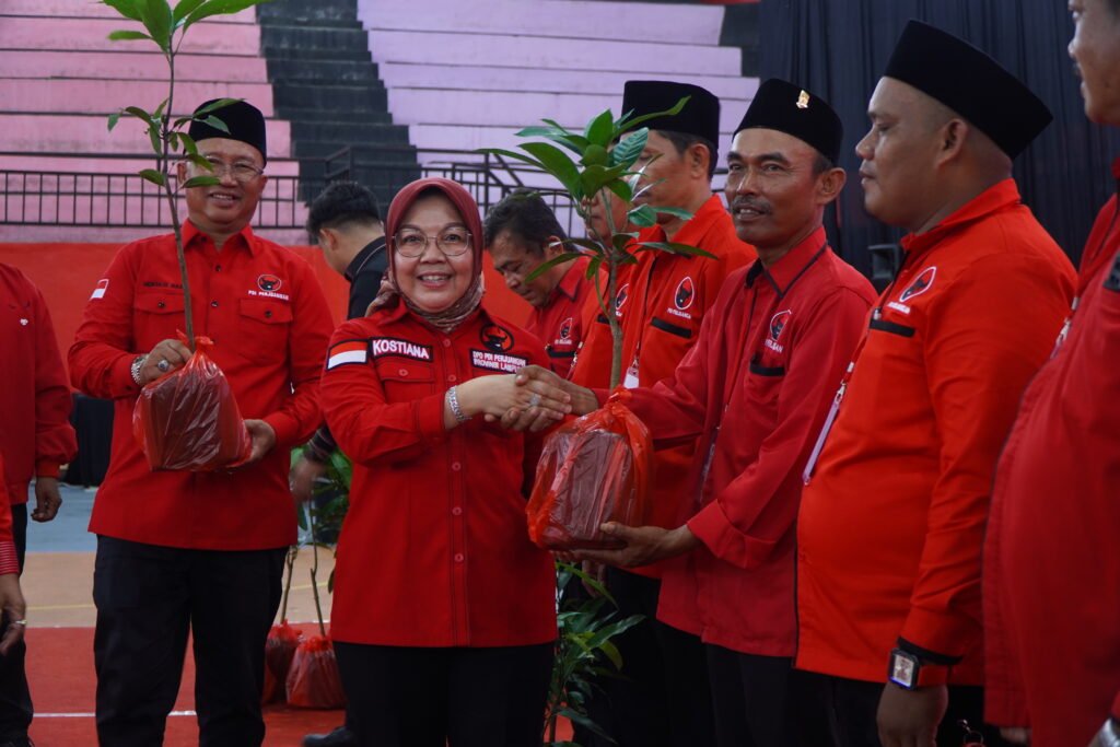 Lampung Selatan — Dewan Pimpinan Daerah (DPD) PDI Perjuangan Provinsi Lampung membagikan bibit tanaman dalam rangkaian kegiatan Musyawarah Anak Cabang (Musancab) DPC PDI Perjuangan Kabupaten Lampung Selatan, di Gor Way Handak, Minggu (1/2/2026).
