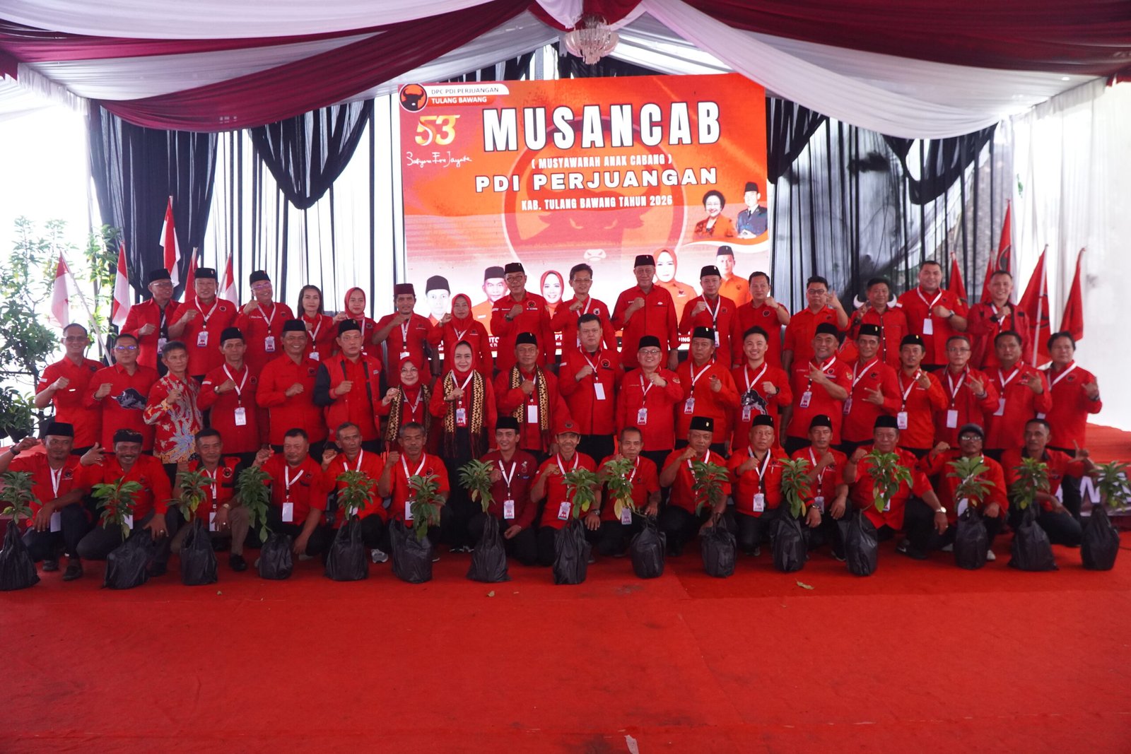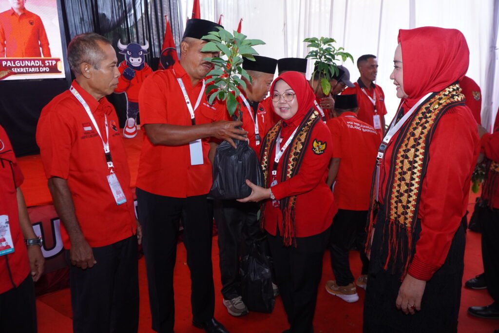 Tulang Bawang — Dewan Pimpinan Daerah (DPD) PDI Perjuangan Provinsi Lampung membagikan bibit alpukat kepada peserta Musyawarah Anak Cabang (Musancab) Dewan Pimpinan Cabang (DPC) PDI Perjuangan Kabupaten Tulang Bawang, Kamis (12/2/2026).