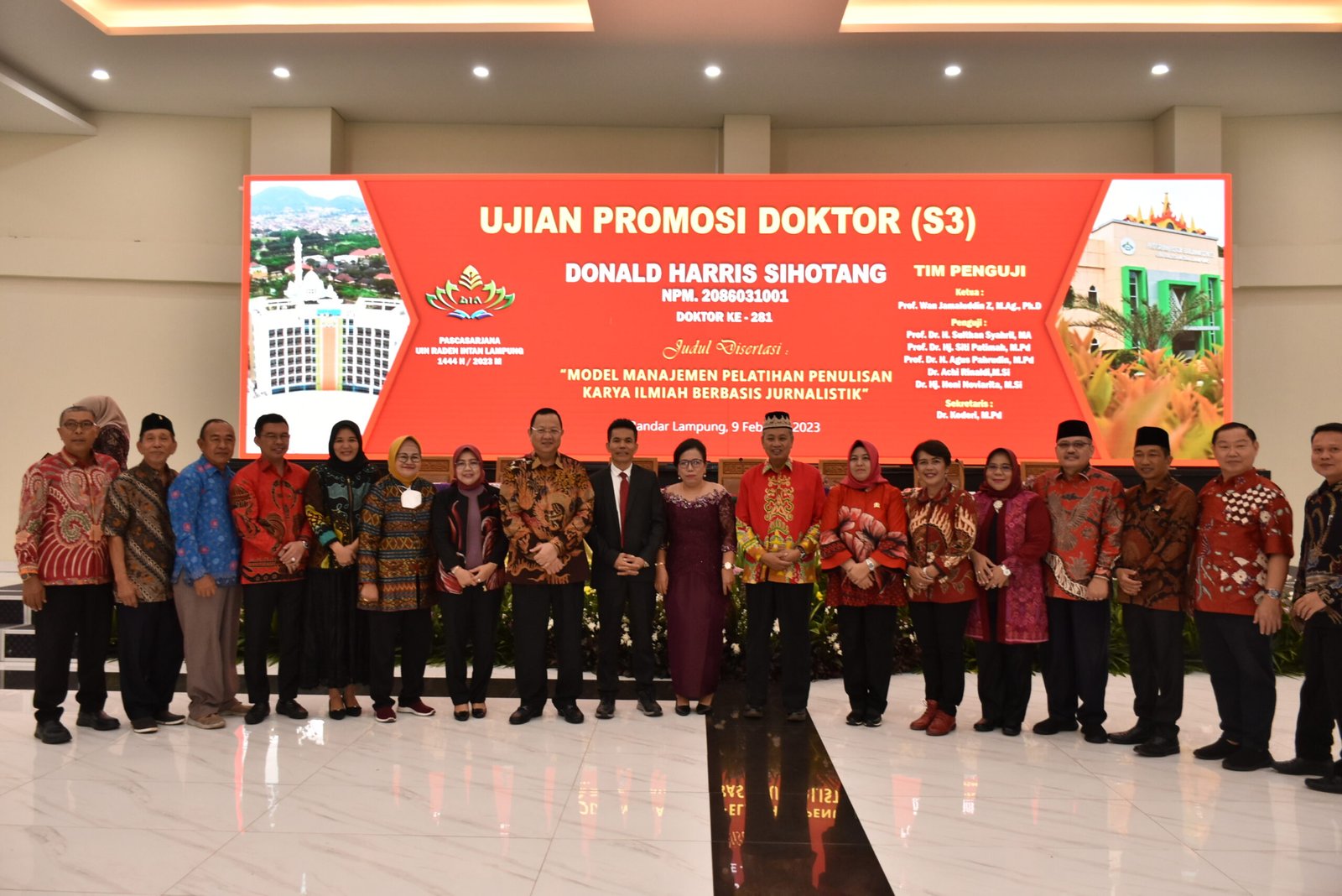 <p><br><strong>Bandar Lampung</strong> &#8211; DPD PDI Perjuangan Provinsi Lampung menghadiri Ujian Promosi Doktor (S3) Wakil Ketua Bidang Ekonomi Kreatif dan Ekonomi Digital, Donald Harris Sihotang, di Ballroom Universitas Islam Negeri Raden Intan Lampung (UIN RIL), Kamis (9/2/23).</p>