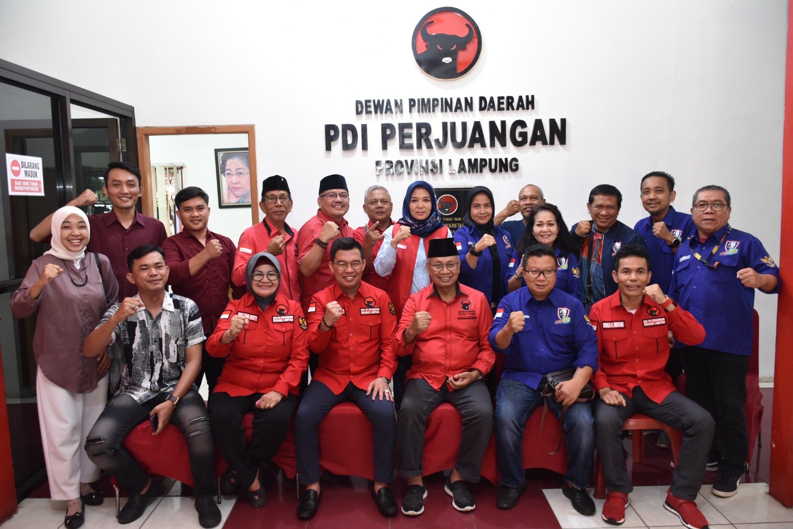 Bandar Lampung – DPD PDI Perjuangan Provinsi Lampung menerima kunjungan audiensi dari Ganjarist dan Banteng Nusantara yang merupakan relawan Ganjar Pranowo calon Presiden Pemilu 2024, di Kantor DPD Partai setempat, Jumat (16/6/2023).