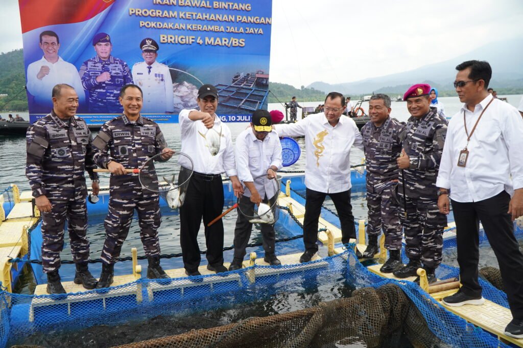 Pada kegiatan ini pun Ketua Komisi IV DPR RI, Mentan bersama Wakasal serta rombongan melakukan peninjauan lahan ketahanan pangan dan menebar benih ikan sekaligus panen ikan bawal bintang di Keramba Jaring Apung yang dikembangkan Lanal Lampung dan Brigif 4 Marinir/BS.