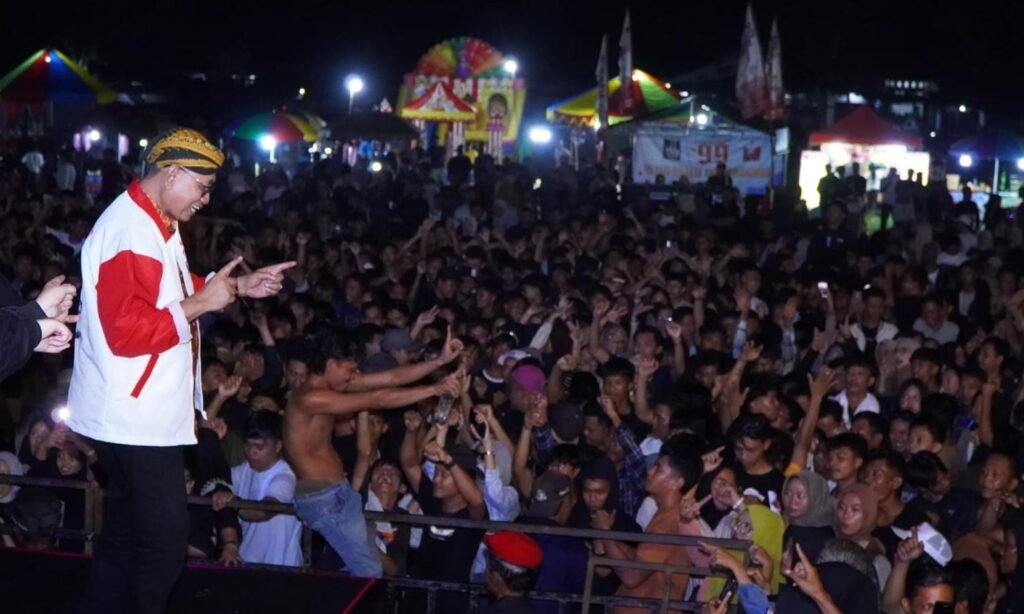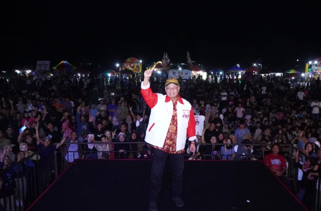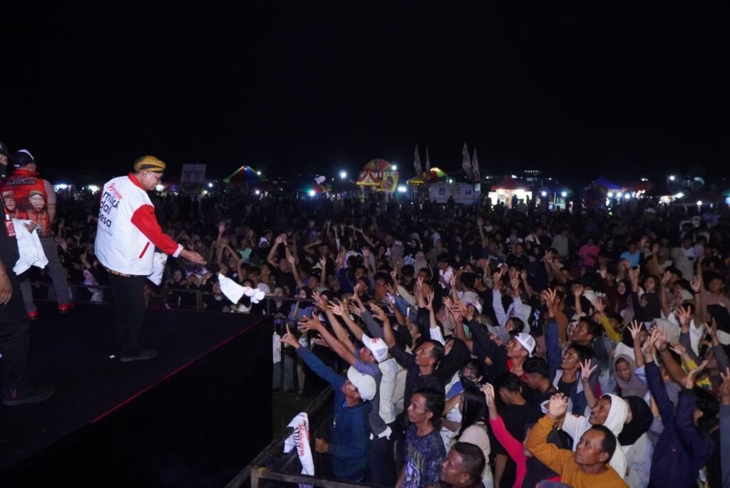 Lampung Timur – Masyarakat membludak memadati konser panah Ardjuno di hari terakhir kampanya Pilkada serentak 2024. Konser ini berlangsung di Lapangan Merdeka Raman Utara, Lampung Timur, Sabtu (23/11/2024).