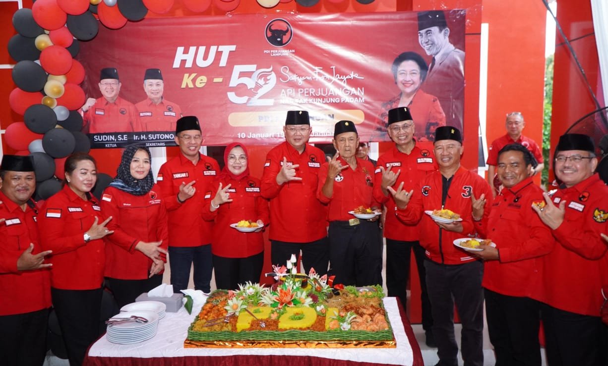<p><br>Bandar Lampung &#8211; DPD PDI Perjuangan Lampung memaknai momentum perayaan Hari Ulang Tahun (HUT) ke-52 bertajuk &#8220;Satyam eva Jayate&#8221; sebagai ajang konsolidasi internal partai, Jumat (10/1/2025).</p>