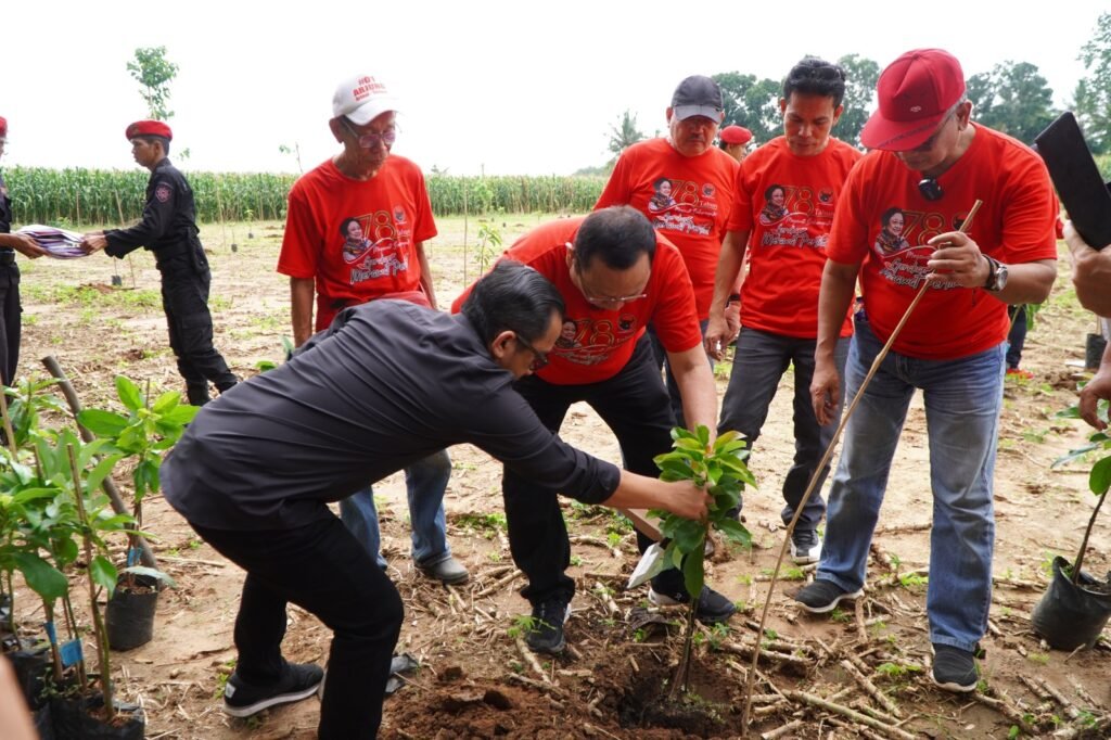 Diketahui, penanaman ini dilakukan oleh PDI Perjuangan seluruh Indonesia. Mulai dari kecamatan, kabupaten, maupun provinsi dalam rangka HUT Ketua Umum Megawati Soekarnoputri ke 78. “Umur sudah tua tapi Ibu Ketua umum sangat sehat dan gagah untuk orangtua yang berumur 78 tahun,” tandasnya. (*)