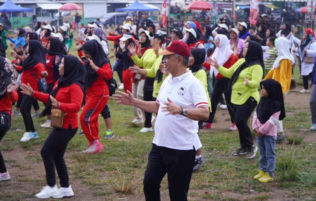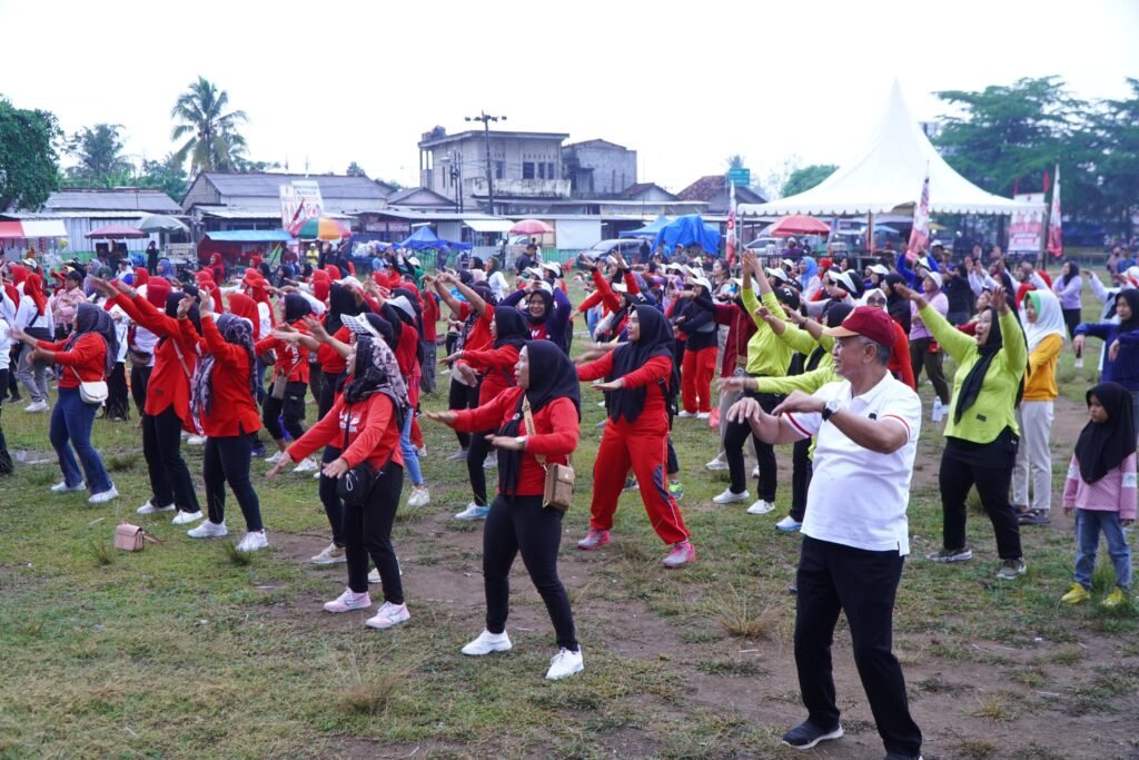 Lampung Tengah – Calon Wakil Gubernur Lampung, Sutono melakukan senam bersama ratusan ibu-ibu di Lapangan Dono Arum, Lampung Tengah, Minggu (3/11/2024).