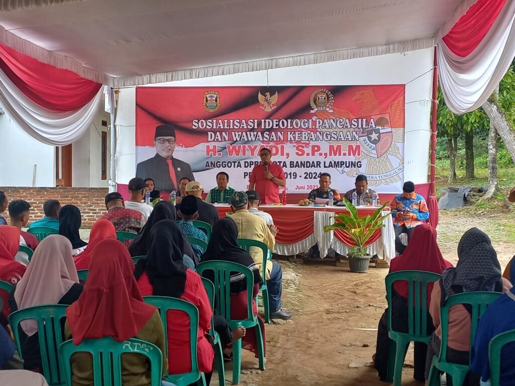 Demikian, diungkapkan Ketua DPRD Kota Bandar Lampung, Hi. Wiyadi saat melakukan agenda Sosialisasi Ideologi Pancasila dan Wawasan Kebangsaan (IPWK) di Jalan M. Ali, Kelurahan Kedaung, Kecamatan Kemiling, Kota Bandar Lampung, Selasa (27/06/2023).