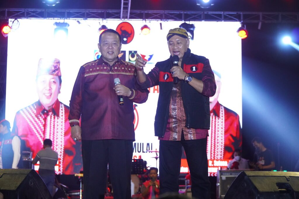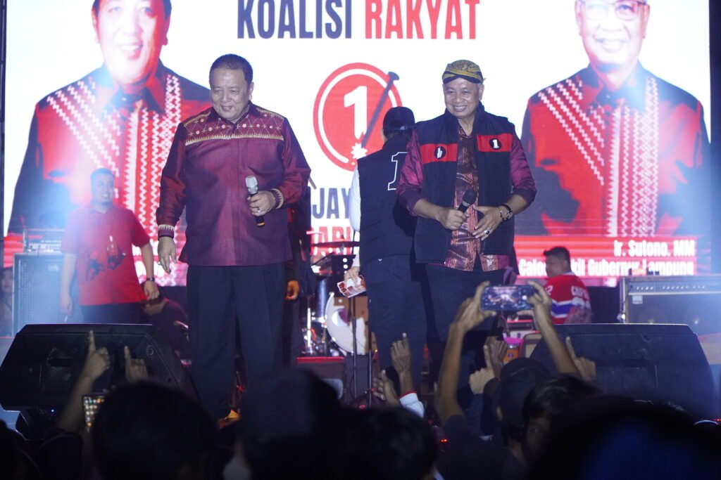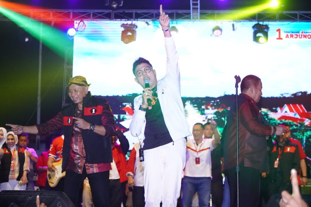 Lampung Selatan – Deretan artis bintang tamu diantaranya Yusuf Cakculay, NTR Ambyar, dan Andika Kangen Band, kompak ajak masyarakat coblos pasangan calon (Paslon) Gubernur dan Wakil Gubernur Arınal Djunaidi – Sutono (Ardjuno)