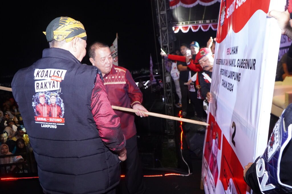 “Jangan lupa tanggal 27 November 2024 kita coblos nomor 1 bapak Arinal Djunaidi – dan bapak Sutono,” pintanya.