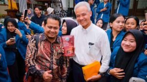 Jawa Tengah – Puluhan mahasiswa Universitas Lampung (Unila), bertamu ke rumah dinas Gubernur Jawa Tengah Ganjar Pranowo, Senin (22/5/2023) sore. Kedatangan mereka dari Lampung untuk berguru tentang reformasi birokrasi ke Ganjar.