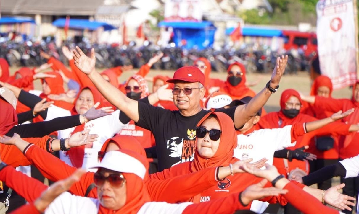 <p>Senam bersama ibu-ibu ini dilakukan menjelang pesta hiburan rakyat yang akan dihadiri oleh Calon Gubernur dan Wakil Gubernur Lampung, Arinal-Sutono, Calon Bupati dan Wakil Bupati Lampung Selatan, Nanang Ermanto-Antoni, Fungsionaris PDI Perjuangan Lampung, serta tim pemenangan, pendukung hingga relawan para pasangan calon.</p>