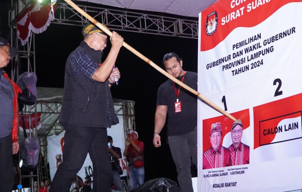 “Saya mendampingi Pak Arinal, dan kami ada nama gabungan yaitu Ardjuno, Arinal Djunaidi dan Sutono, kami pasangan calon nomor urut 1,” jelasnya.