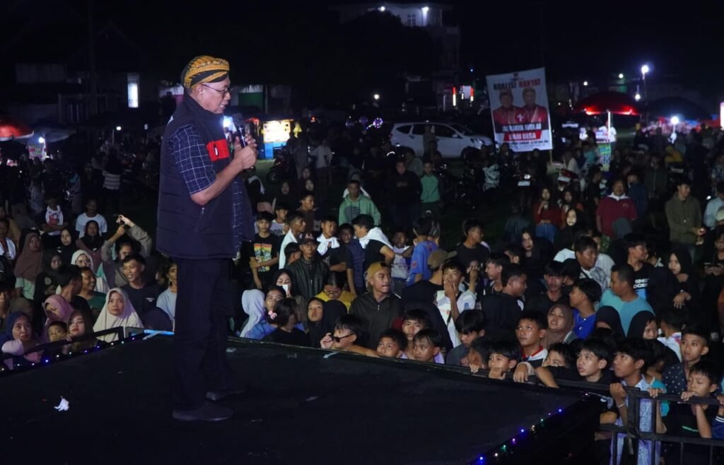 Dirinya menyampaikan bahwa pesta rakyat Panah Ardjuno malam ini dilaksanakan di dua kabupaten yaitu, Lampung Tengah dan Lampung Barat.