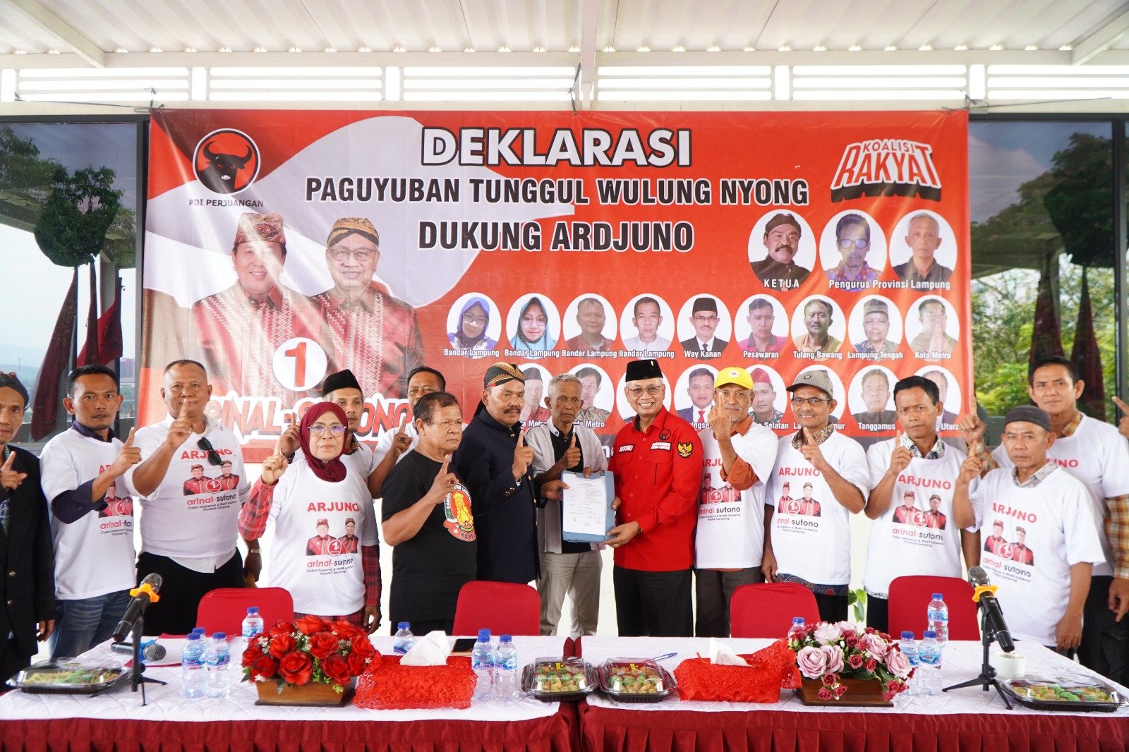 <p><br>Bandar Lampung &#8211; Sebanyak 407 ribu anggota Paguyuban Tunggul Wulung Nyong yang tersebar di berbagai kabupaten dan kota di Provinsi Lampung kini menyatukan dukungan mereka untuk pasangan calon Gubernur dan Wakil Gubernur Lampung nomor urut 1, Arinal Djunaidi dan Sutono, yang dikenal dengan sebutan &#8220;Arjuno&#8221;.</p>