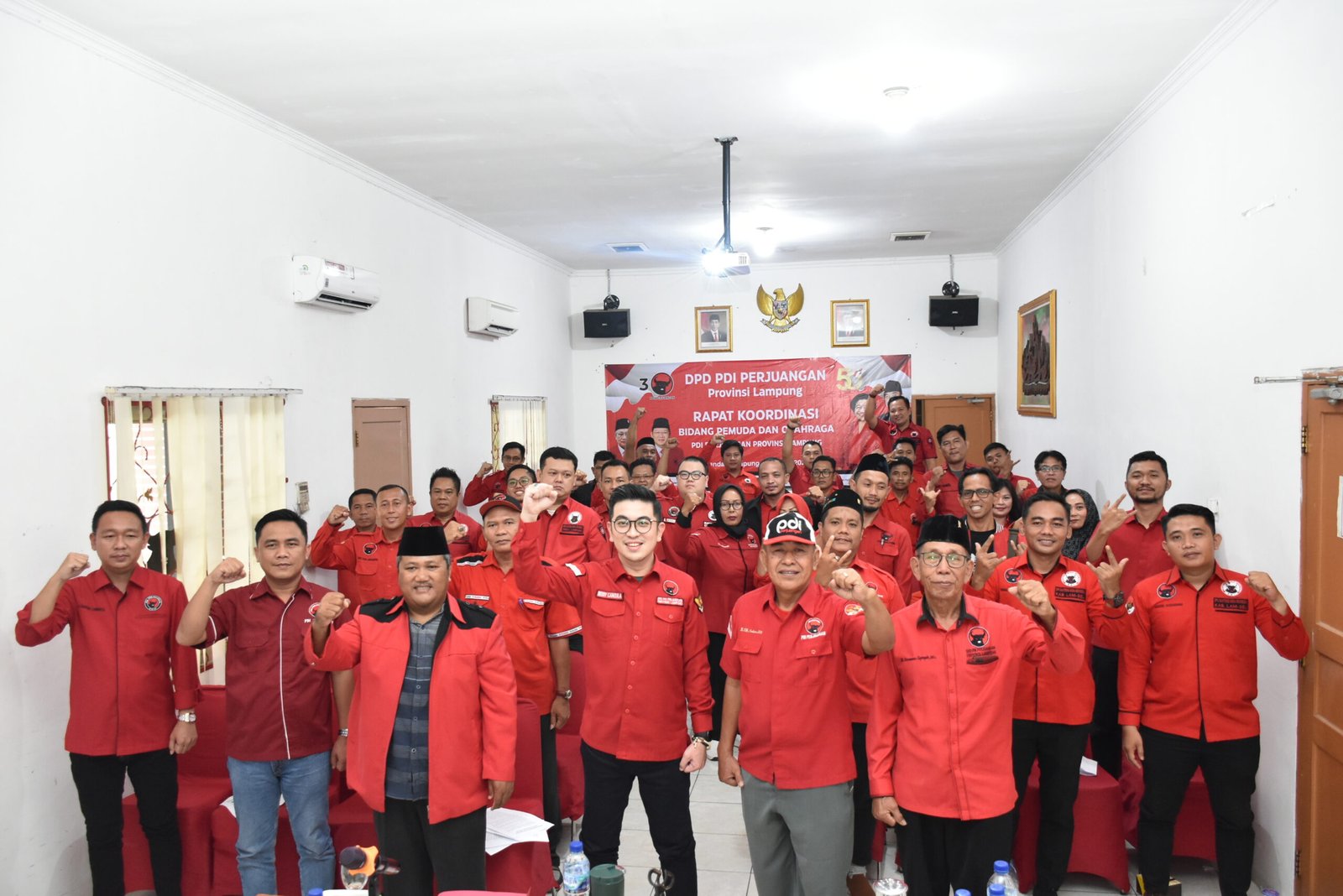 <p><br><strong>Bandar Lampung &#8211; DPD PDI Perjuangan Lampung menggelar Rapat Koordinasi Pemuda dan Olahraga guna memanaskan kembali mesin partai baik melalui pergerakan secara langsung</strong> maupun melalui Komunitas Juang dalam menghadapi tahun politik 2024 mendatang.</p>