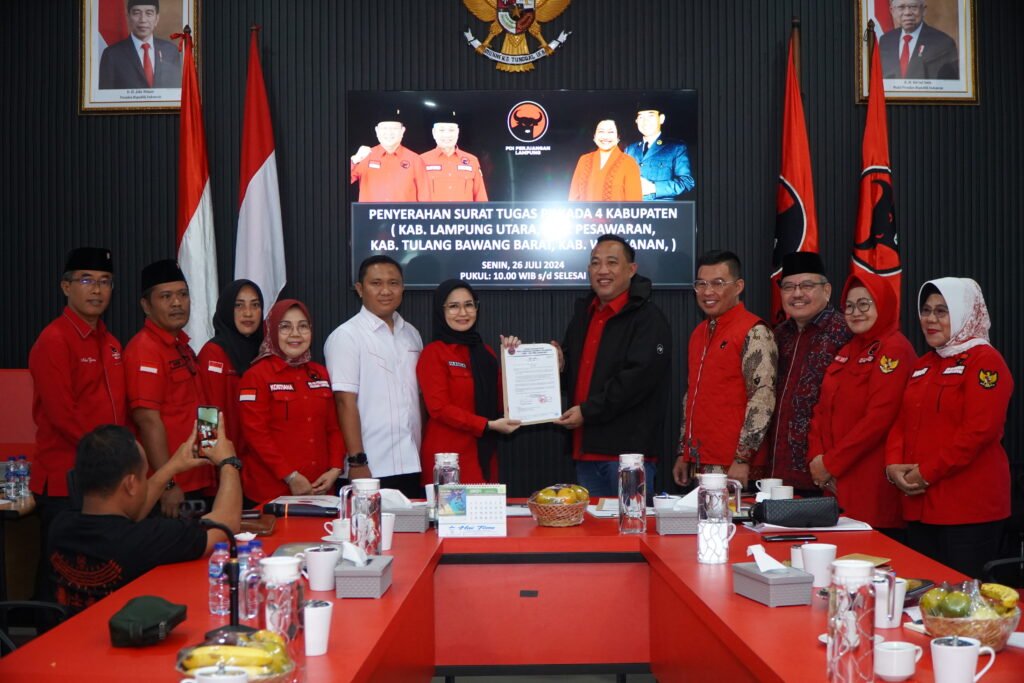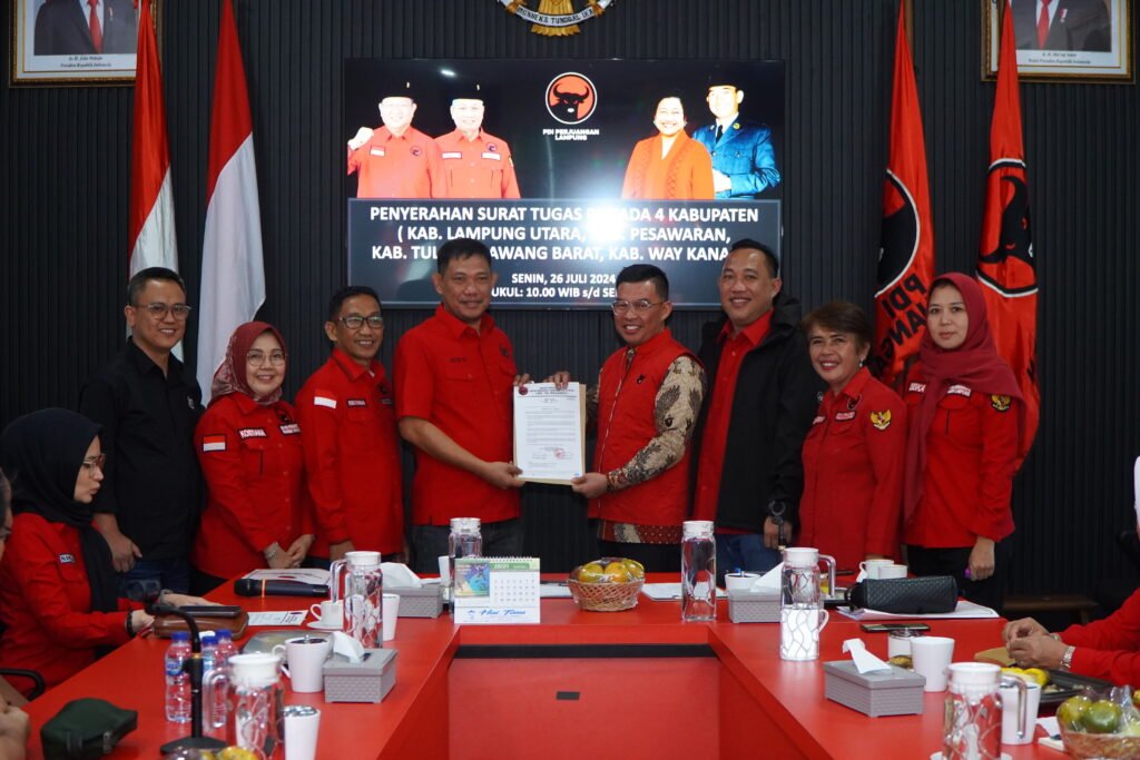 Bandar Lampung – Empat bakal calon kepala daerah (Cakada) mendapatkan surat tugas dari PDI Perjuangan untuk maju dalam kontestasi pemilihan kepala daerah (Pilkada) serentak 2024.