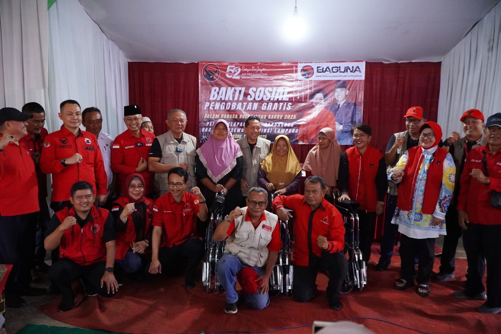 <p>Pringsewu – Dalam rangka memperingati Bulan Bung Karno yang jatuh setiap bulan Juni, Badan Penanggulangan Bencana (Baguna) DPP berkoordinasi dengan DPD Lampung, dan DPC Kabupaten Pringsewu menggelar kegiatan bakti sosial berupa pengobatan gratis dan pembagian sembako di Pekon (desa) Salapan, Kecamatan Pardasuka, kabupaten setempat, Rabu (18/6/2025).</p>