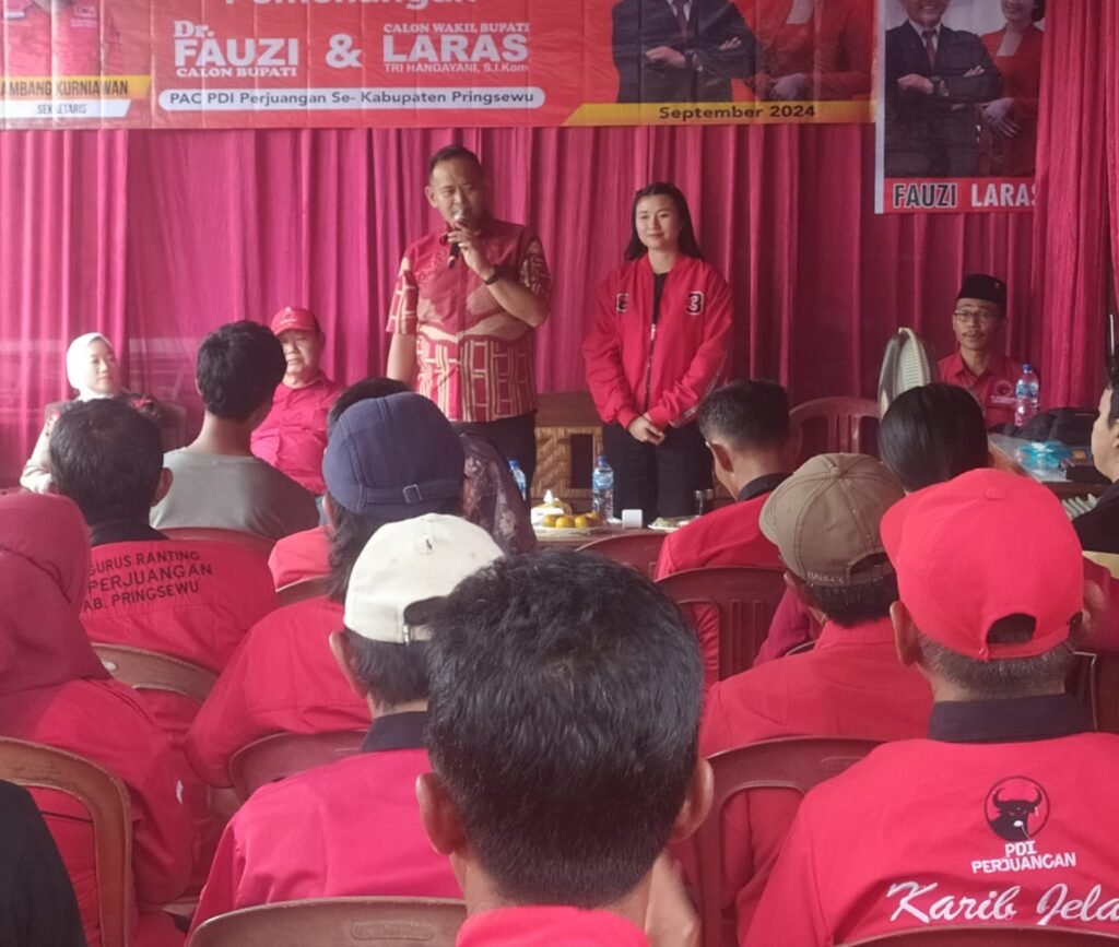 “Nanti rapat koordinasi ini menjadi dasar untuk pelaksanaan rapat koordinasi di tingkat kecamatan, di mana 9 Pimpinan Anak Cabang (PAC) hadir dan menyatakan dukungan penuh terhadap pemenangan pasangan Fauzi – Laras. Dr. Fauzi maju sebagai calon Bupati Pringsewu sementara Laras Tri Handayani, yang merupakan kader PDIP sebagai calon Wakil Bupatinya,” jelas Palgunadi.