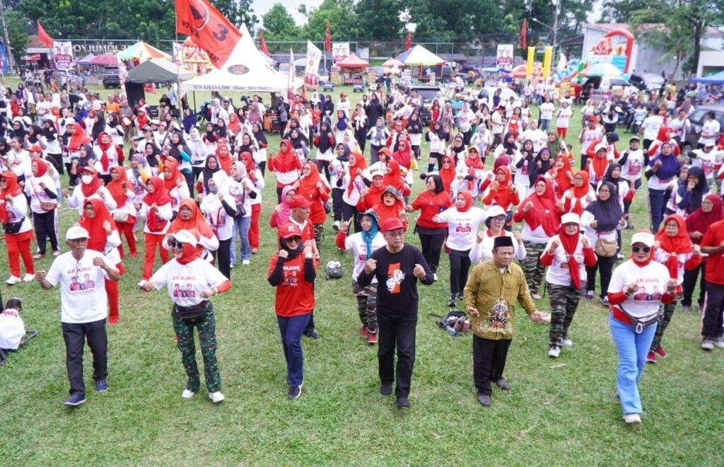 Pantauan di lapangan, masyarakat sangat antusias mengikuti senam. Kemeriahan bertambah saat kedatangan Calon Wakil Gubernur Lampung, Sutono hingga banyak warga yang berswafoto.