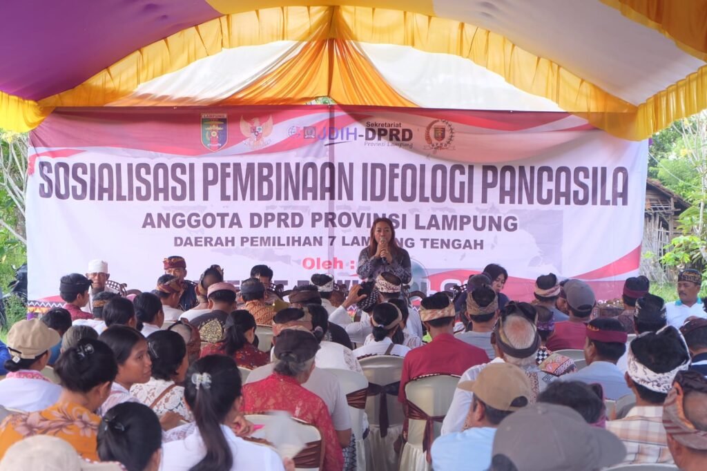 Lampung Tengah – Anggota DPRD Provinsi Lampung Fraksi PDI Perjuangan Ni Ketut Dewi Nadi melaksanakan Sosialisasi Pembinaan Ideologi Pancasila (PIP) di Kampung Rama Yana Kecamatan Seputih Raman, Sabtu (13/05/2023).