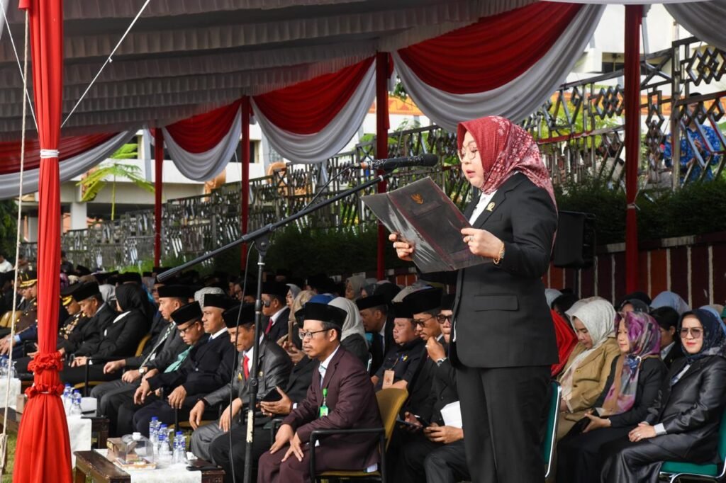 Bandar Lampung – Pemerintah Provinsi (Pemprov) Lampung bersama DPRD Lampung menggelar upacara Hari Lahir Pancasila Tahun 2025 di Lapangan Korpri, Kantor Gubernur Lampung, Senin (02/06/2025).