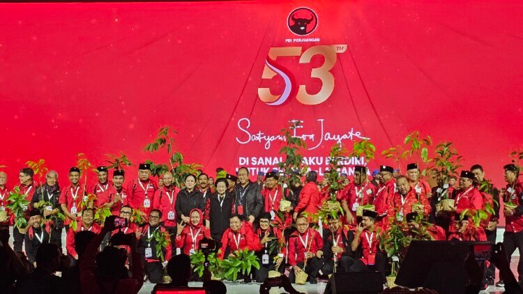 Ketua Umum PDI Perjuangan Megawati Soekarnoputri menutup Rapat Kerja Nasional (Rakernas) I PDI Perjuangan dengan membagikan bibit pohon dan tas siaga bencana kepada seluruh Ketua DPD PDI Perjuangan se-Indonesia.
