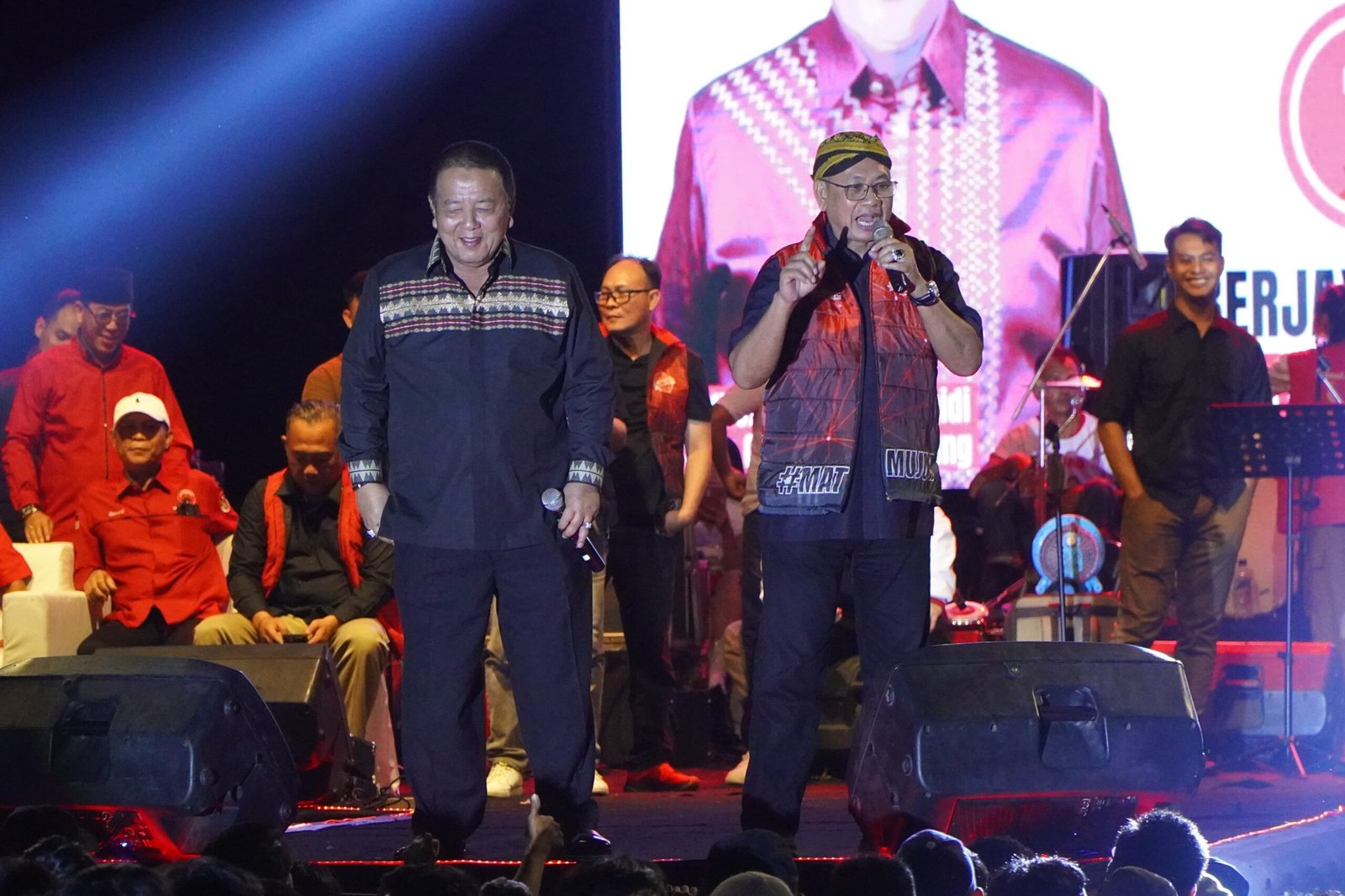 <p><br>Konser Panah Arjuno dihadiri Ketua Tim Pemenangan Paslon Gubernur dan Wakil nomor urut 1 Umar Ahmad beserta Paslon Bupati Syamsudin dan calon Wakil Bupati Mesuji Yulivan.</p>