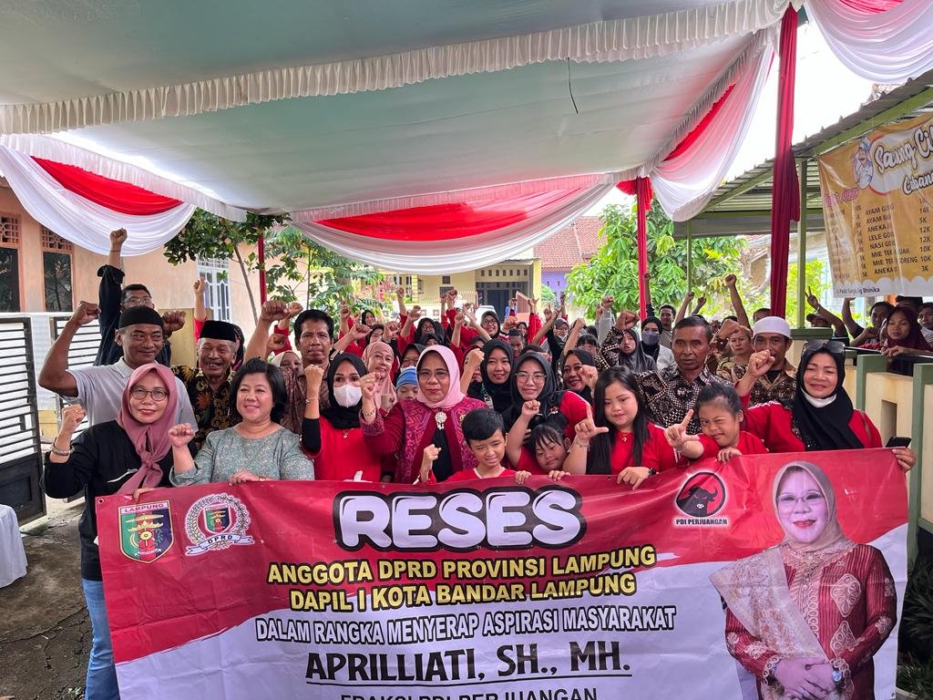 Bandar Lampung – Menjalankan fungsi sebagai Dewan Perwakilan Rakyat Daerah (DPRD) Provinsi Lampung, Aprilliati menggelar reses, menyapa sekaligus mendengarkan aspirasi masyarakat Kelurahan Labuhan Dalam, Kecamatan Tanjung Senang, Kota Bandar Lampung, Minggu (26/2/23).