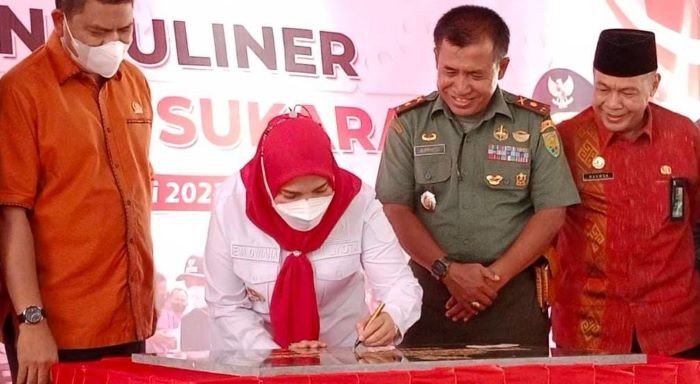 Bandar Lampung – Walikota Bandar Lampung yang juga Wakil Ketua Bidang Kesehatan, Perempuan dan Anak DPD PDI Perjuangan Lampung, Eva Dwiana, meresmikan Taman Kuliner Siger UMKM Sukaraja, Rabu (18/1/2023).