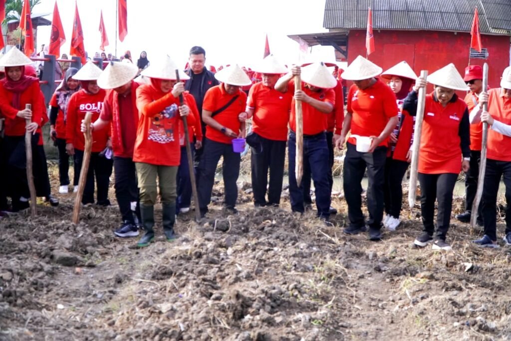 Lampung Selatan – DPD PDI Perjuangan Provinsi Lampung mewarnai momentum Hari Kartini dengan cara istimewa. Jajaran pengurus DPD PDI Perjuangan Lampung menanam bibit tanaman pangan di lahan seluas 3.000 hektare di Desa Palas Jaya, Kabupaten Lampung Selatan, Selasa (21/4/2026).