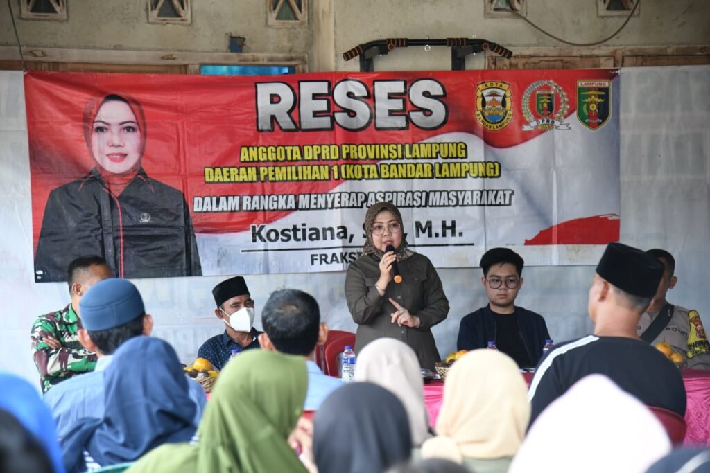 Bandar Lampung – Anggota DPRD Provinsi Lampung, Kostiana, menggelar reses guna menyerap aspirasi masyarakat Kelurahan Sukamenanti, Kecamatan Kedaton, Kota Bandarlampung, Sabtu (25/02/23).