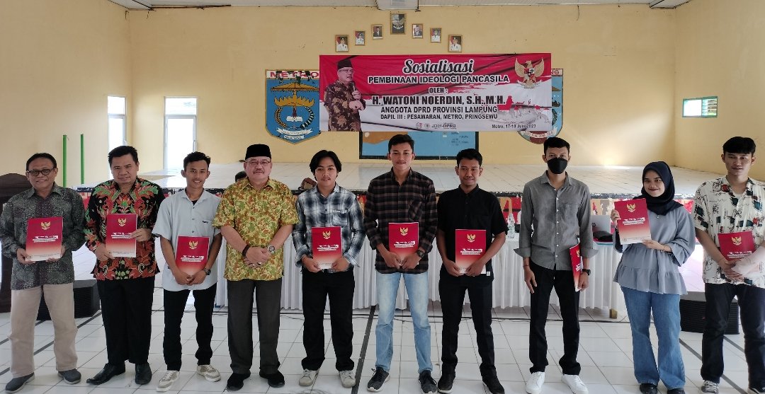 <p>Metro &#8211; Anggota DPRD Provinsi Lampung Fraksi PDI Perjuangan, Watoni Noerdin menggelar sosialisasi pembinaan ideologi Pancasila di Aula Mulyojati Kota Metro, Minggu (18/6/2023).<br /></p>