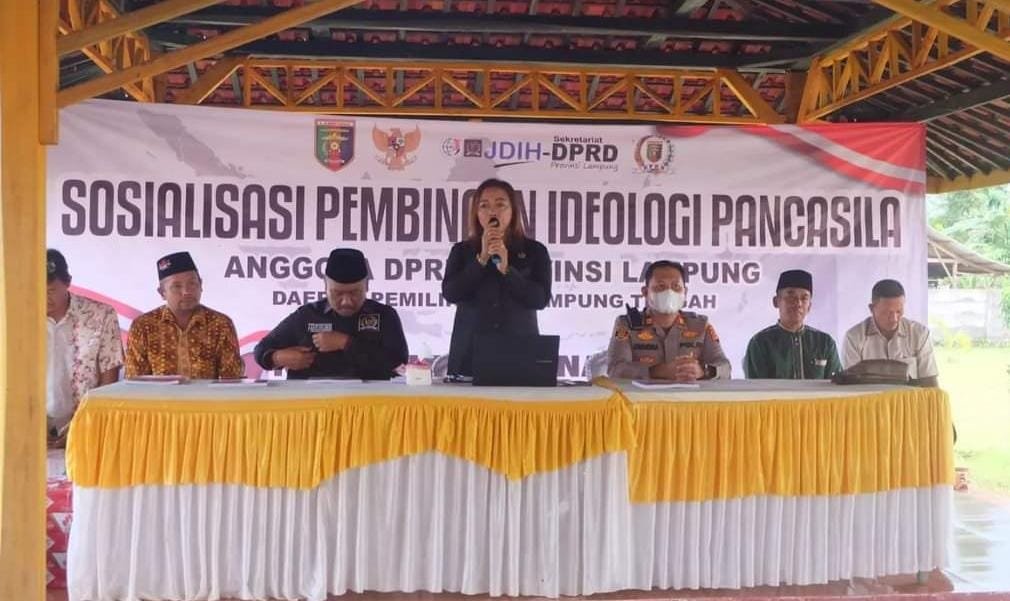 “Kami, 85 anggota DPRD provinsi Lampung, turun ke daerah pemilihan masing masing untuk terus diadakan karena saat ini banyak berita hoax dari media sosial dan banyak terjadi tindak kriminal yang dilakukan oleh anak muda, tawuran, dan kejahatan dijalanan. Ternyata ada yang degradasi nilai nilai yang bergeser dalam masyarakat, oleh karena itu sebagai salah satu program anggota dewan DPRD provinsi Lampung untuk terus mensosialisasikan kembali ideologi Pancasila”, ungkapnya.